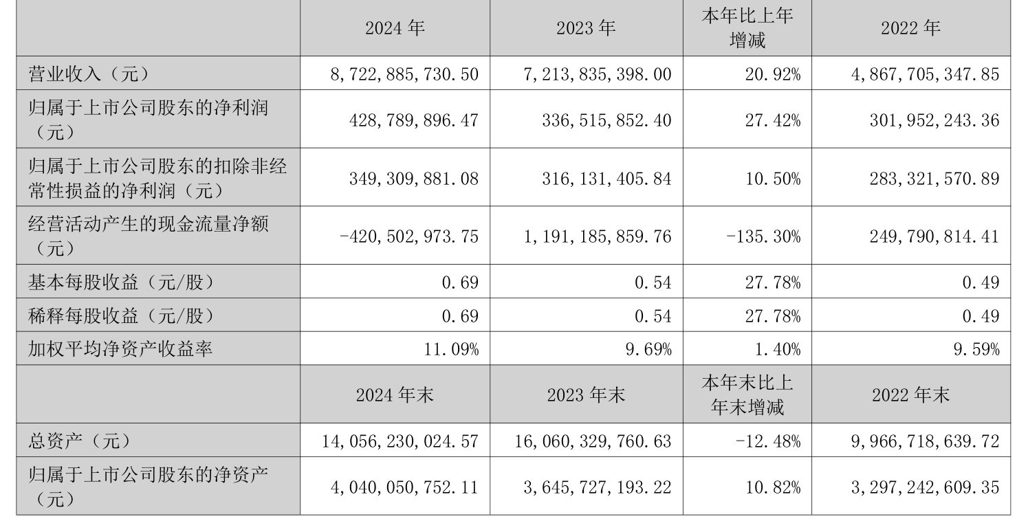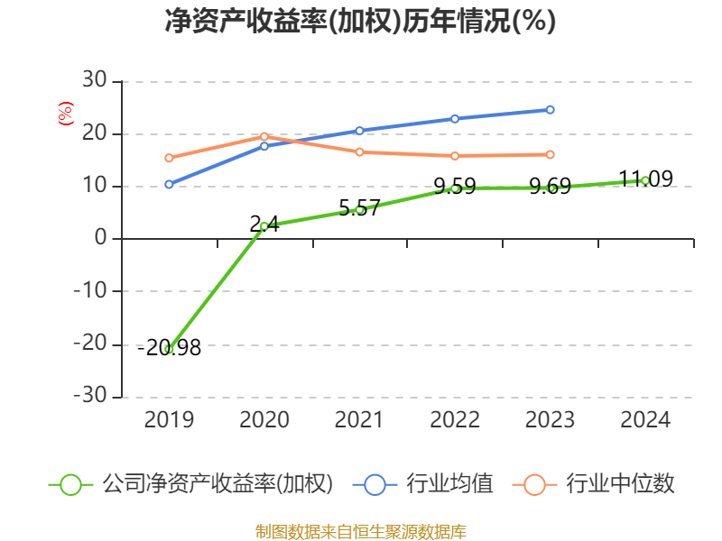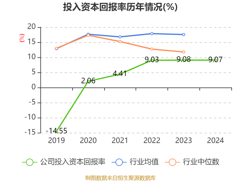 数据显示,2024年公司加权平均净资产收益率为11.09%,较上年同期上升1.4个百分点。公司2024年投入资本回报率为9.07%国尚策略,较上年同期下降0.01个百分点。