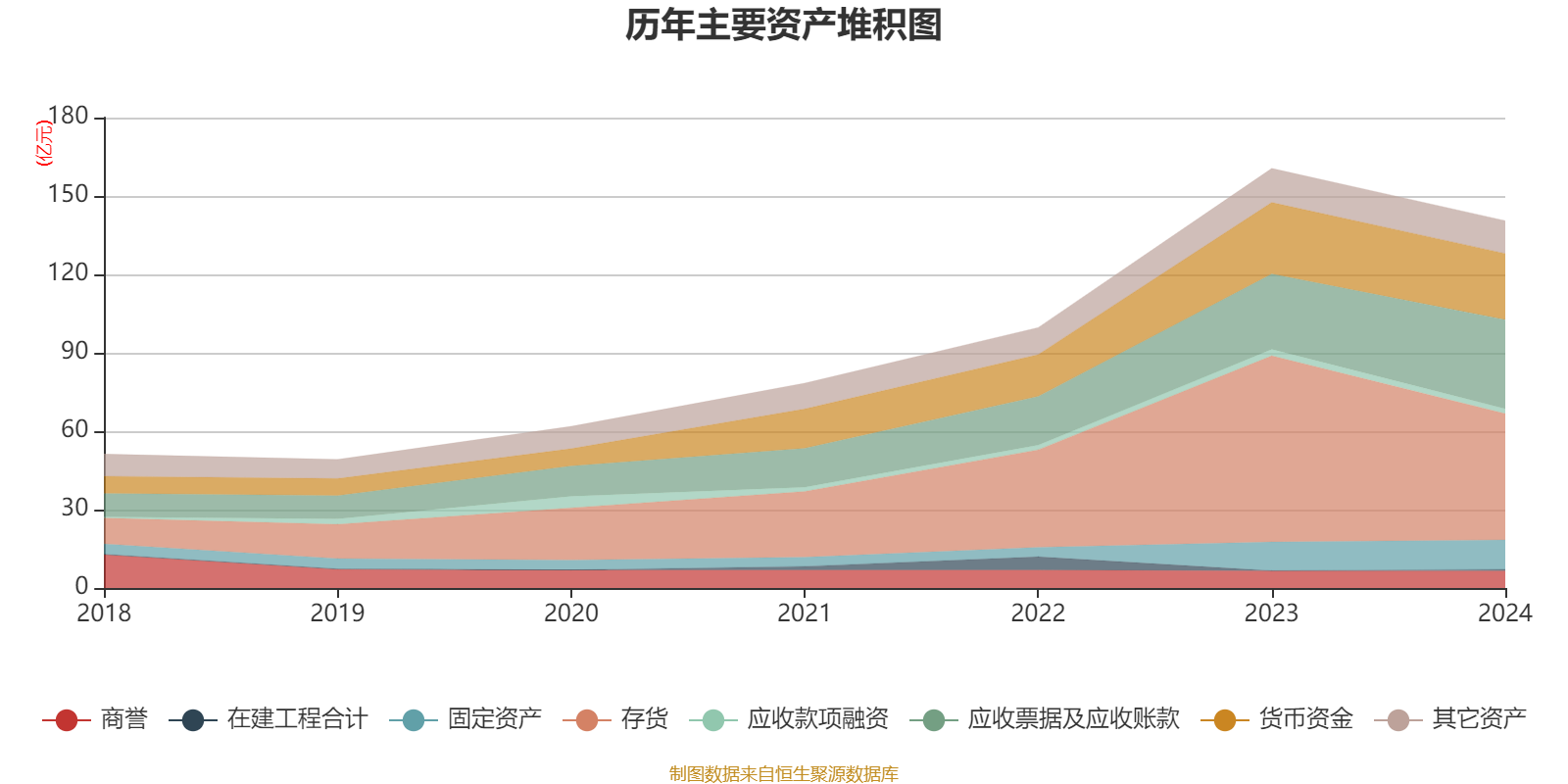 资产重大变化方面,截至2024年末,公司存货较上年末减少32.2%,占公司总资产比重下降10个百分点;应收票据及应收账款较上年末增加18.52%,占公司总资产比重上升6.36个百分点;固定资产较上年末增加2.51%,占公司总资产比重上升1.17个百分点;货币资金较上年末减少7.63%,占公司总资产比重上升0.95个百分点。
