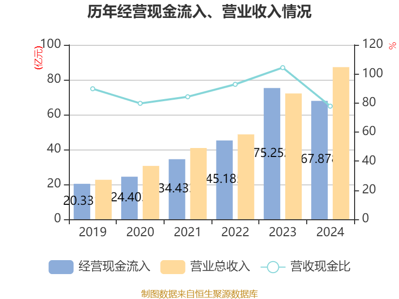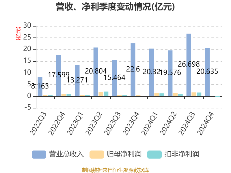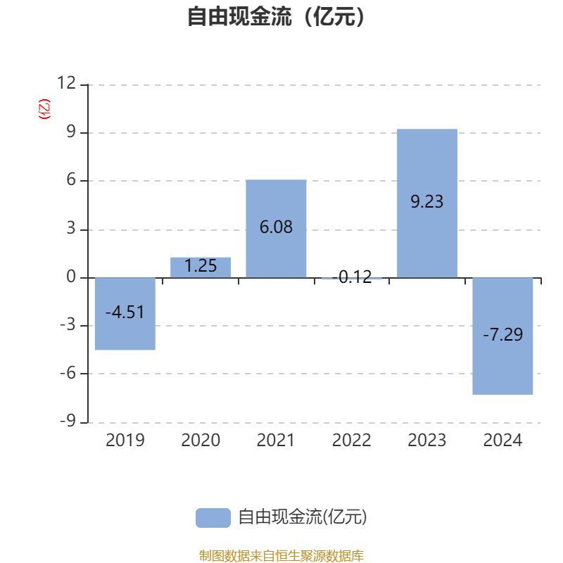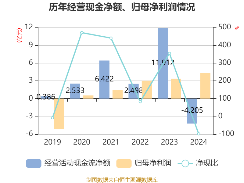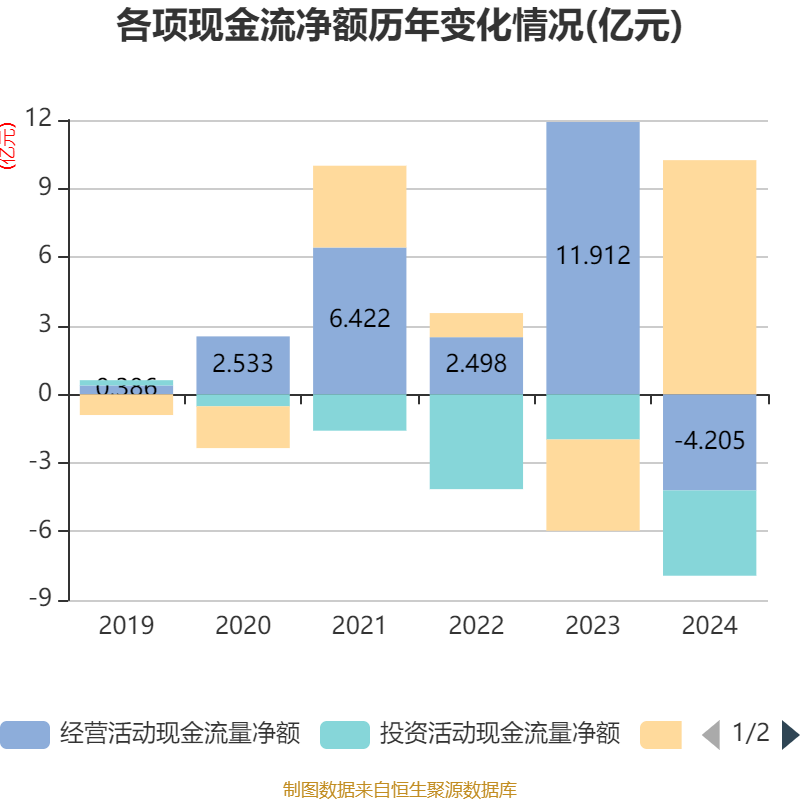 截至2024年,公司经营活动现金流净额为-4.21亿元,同比减少16.12亿元;筹资活动现金流净额10.24亿元,同比增加14.24亿元;投资活动现金流净额-3.73亿元,上年同期为-1.98亿元。