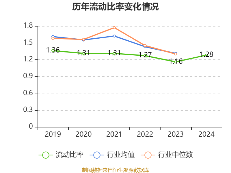 2024年,公司流动比率为1.28,速动比率为0.75。