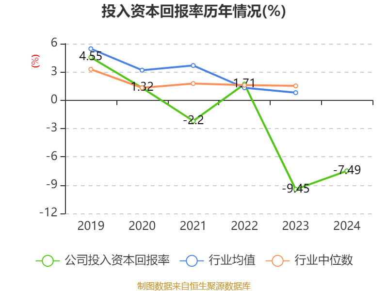 数据显示擒牛网,2024年公司加权平均净资产收益率为-27.22%,较上年同期上升6.39个百分点。公司2024年投入资本回报率为-7.49%,较上年同期上升1.96个百分点。