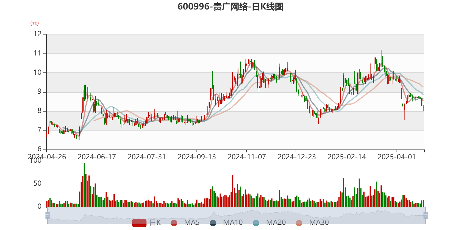 以4月25日收盘价计算,贵广网络目前市盈率(TTM)约为-9.44倍,市净率(LF)约3.43倍,市销率(TTM)约6.41倍。