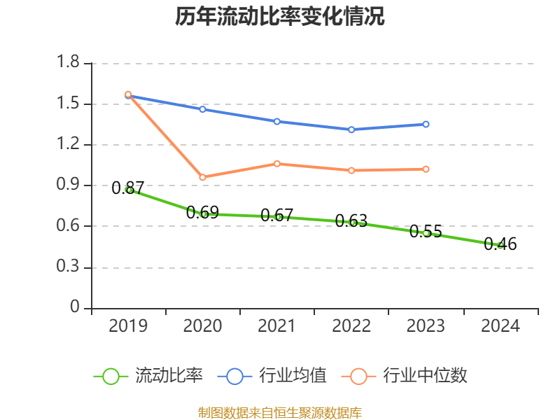 2024年,公司流动比率为0.46,速动比率为0.44。