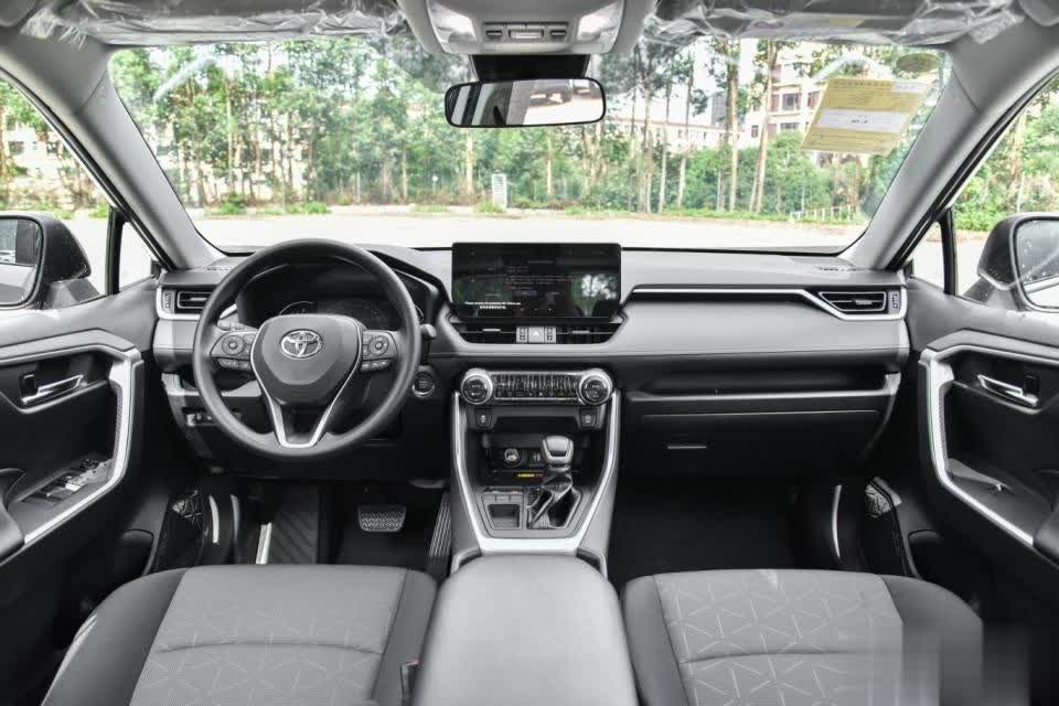 车内算是沉稳低调的风格,塑料感会有些重,摸上去硬邦邦的。三幅式方向盘采用塑料材质,握感中规中矩,不过好在支持上下和前后调节。中控台搭载了12.3英寸液晶仪表盘和10.25英寸中控屏,配备了丰田智行互联系统,预装了高德地图、微信等实用软件,支持百度 CarLife、苹果 CarPlay 和华为 HiCar 智能手机互联、车联网、语音识别等功能。
