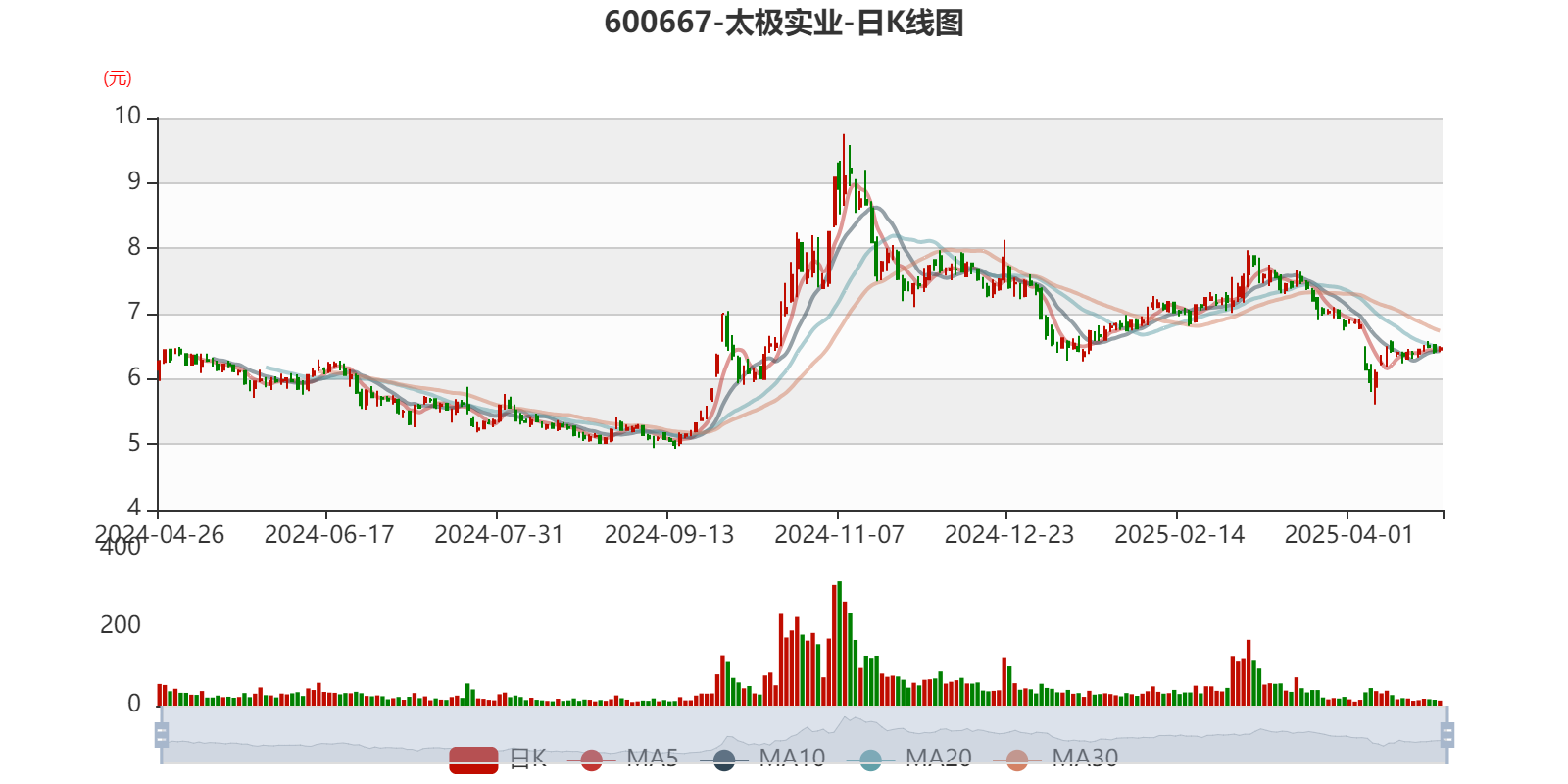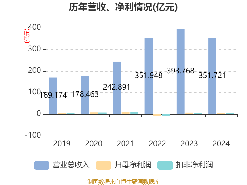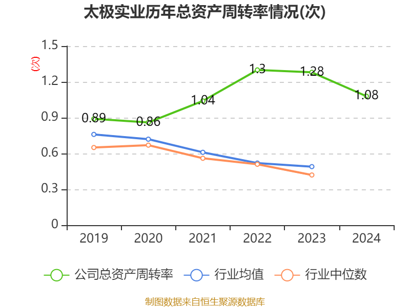 中证智能财讯太极实业(600667)4月26日披露2024年年度报告。2024年,公司实现营业总收入351.72亿元,同比下降10.68%;归母净利润6.57亿元,同比下降9.98%;扣非净利润5.35亿元,同比下降24.94%;经营活动产生的现金流量净额为21.75亿元,同比增长72.93%;报告期内,太极实业基本每股收益为0.31元,加权平均净资产收益率为7.88%。公司2024年度分配预案为:拟向全体股东每10股派现0.95元(含税)。