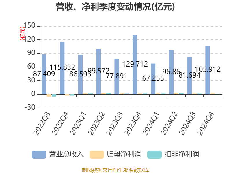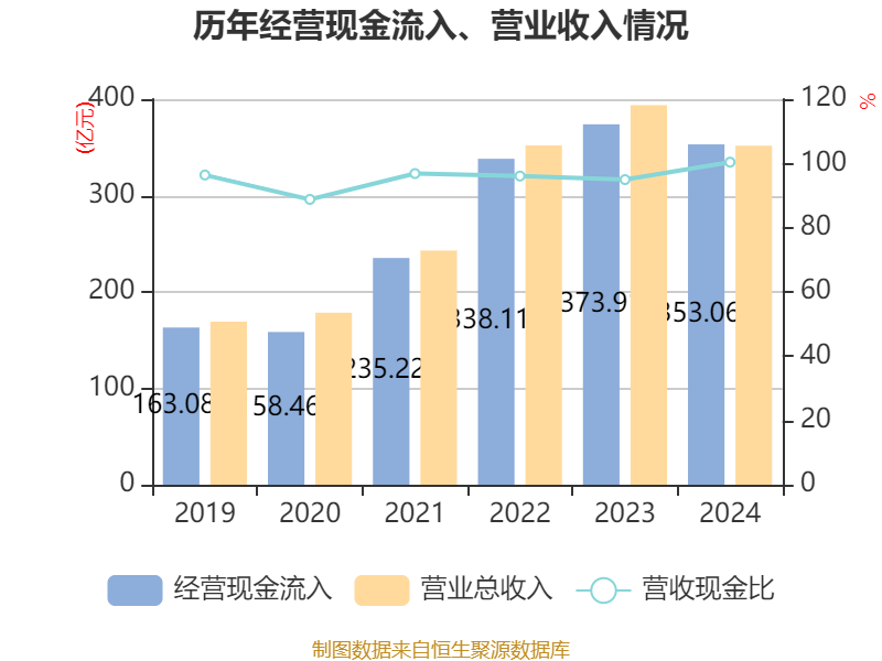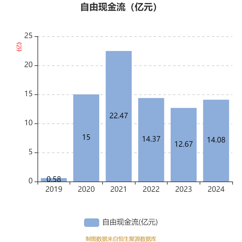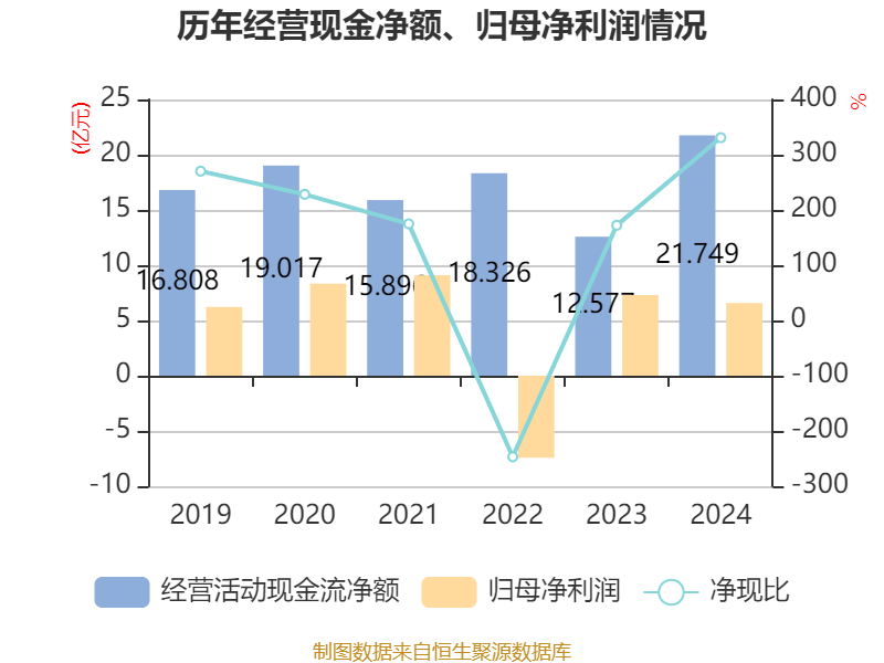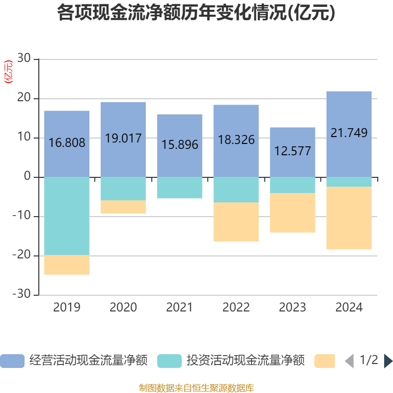截至2024年,公司经营活动现金流净额为21.75亿元,同比增长72.93%;筹资活动现金流净额-15.91亿元,同比减少5.88亿元;投资活动现金流净额-2.53亿元,上年同期为-4.15亿元。