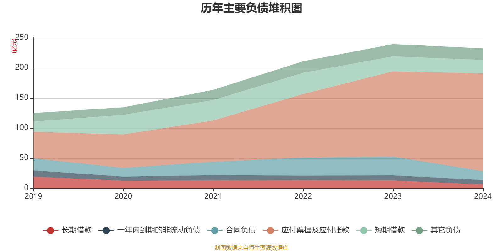 负债重大变化方面,截至2024年末,公司应付票据及应付账款较上年末增加14.86%,占公司总资产比重上升6.63个百分点;合同负债较上年末减少52.87%,占公司总资产比重下降5.02个百分点;长期借款较上年末减少52.07%,占公司总资产比重下降2.06个百分点;短期借款较上年末减少11.01%,占公司总资产比重下降0.82个百分点。
