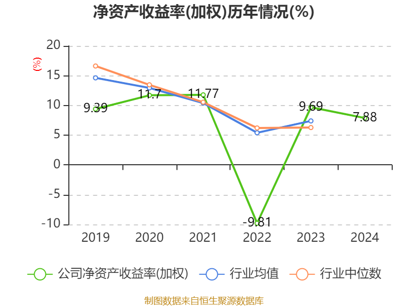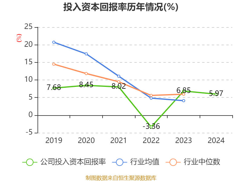 数据显示,2024年公司加权平均净资产收益率为7.88%,较上年同期下降1.81个百分点。公司2024年投入资本回报率为5.97%,较上年同期下降0.88个百分点。